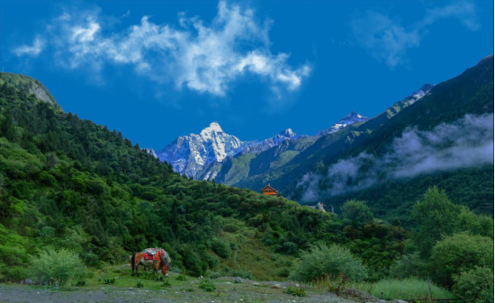 四姑娘山的风景不止单一的雪山,你还能看到湖泊、草甸、牧场和独特的藏族风情。“四峰三沟”的“三沟”是双桥沟、长坪沟和海子沟,它们是游玩四姑娘山的三条通道。